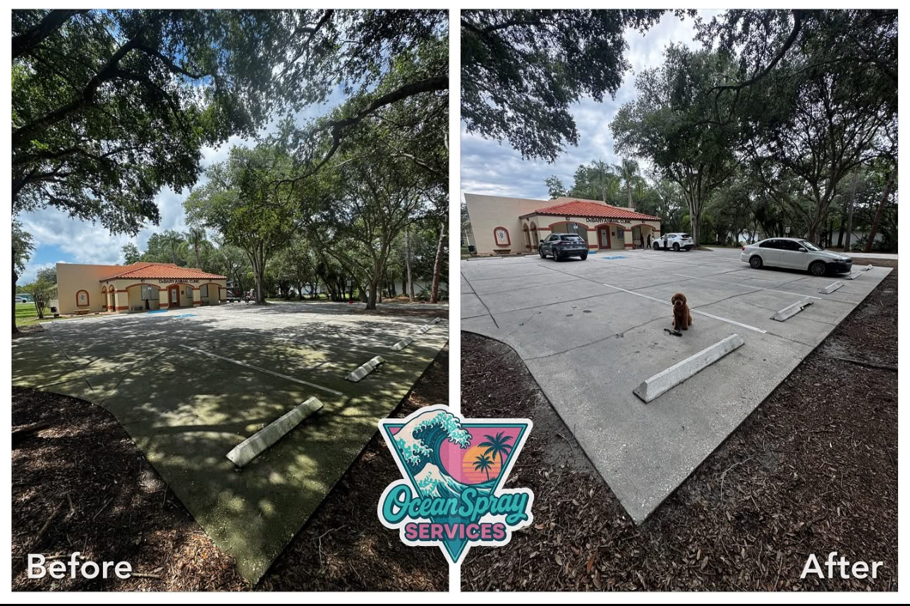 Ocean Spray Services offers power washing solutions for both commercial & residential properties. Our process begins with applying a specialized cleaning solution to pretreat surfaces such as parking lots, driveways, sidewalks, fences, dumpster pads and more, effectively loosening dirt, grime, and stains. We then use high-pressure washing to thoroughly clean and restore the surfaces. To ensure lasting results, Whether it’s cleaning parking lots, driveways, sidewalks, or fences, Ocean Spray Services delivers top-quality, eco-friendly pressure washing to enhance and protect your property.