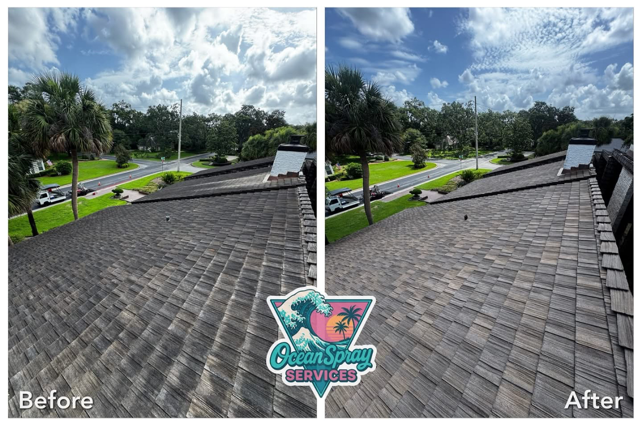 Our Roof cleaning services include cleaning various roof types such as clay tile, slate tile, asphalt shingles, metal roofs, cedar shake, and concrete roof tiles—all with the same careful, soft washing approach that safeguards your surfaces while restoring their beauty. Trust Ocean Spray Services for thorough, eco-conscious cleaning that protects and enhances your properties beauty!